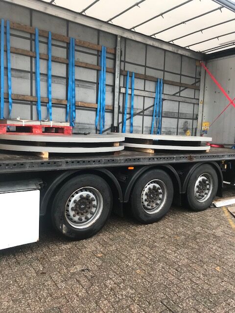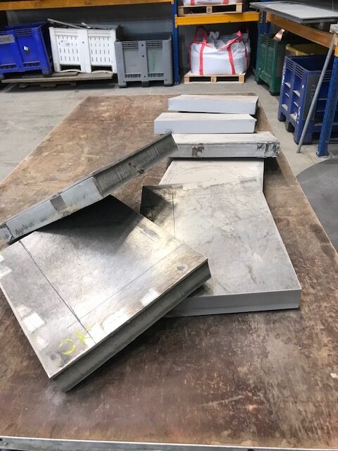 Wij snijden de platen in gevraagde vormen waarna ze afgehaald worden voor verdere bewerking.